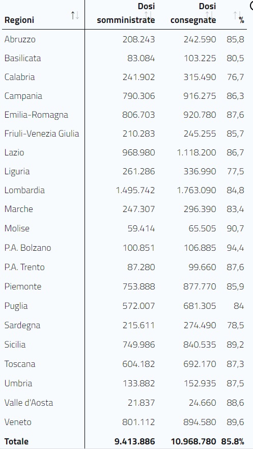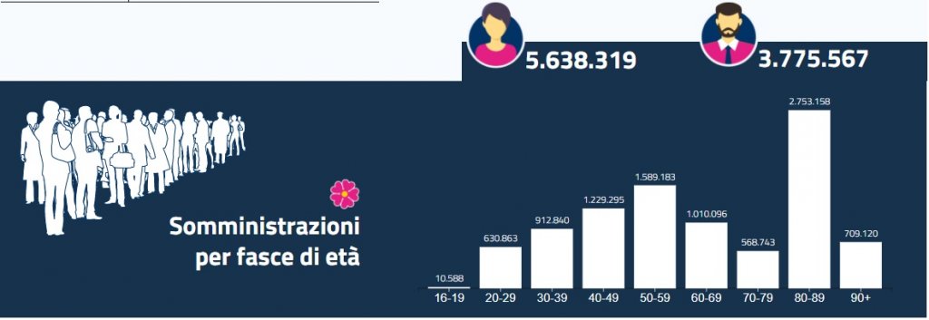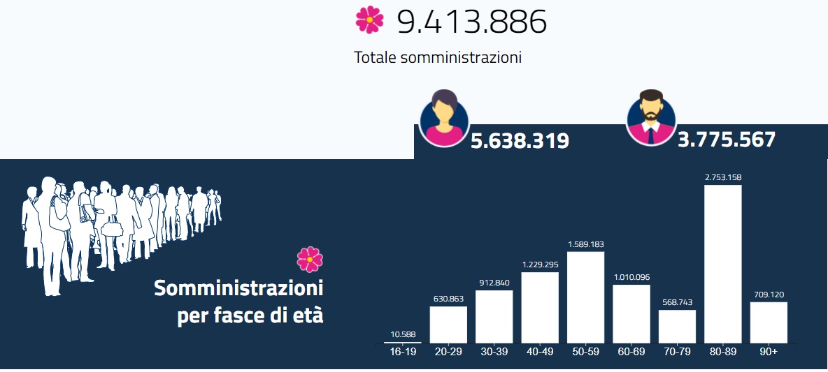 Il 15,62% degli italiani ha avuto almeno una dose di vaccino (in Veneto il 16,18%), fascia 70-79 ancora indietro
