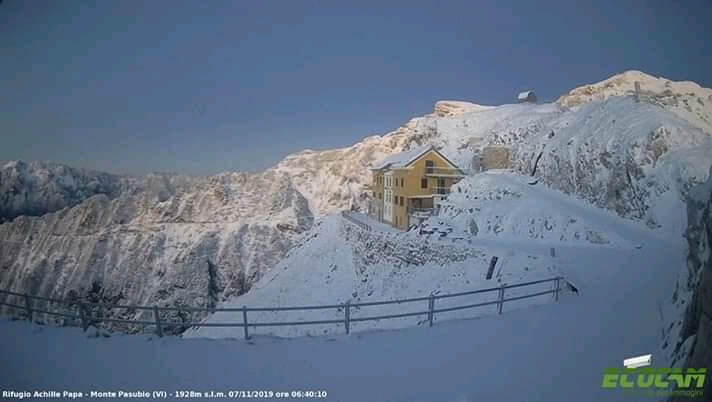 La neve che ieri scendeva lieve stanotte ha accelerato la sua caduta e dal Carega al Pasunio stamattina le webcam live offrono questo spettacolo impareggiabile: le foto stanno già facendo il giro del web.