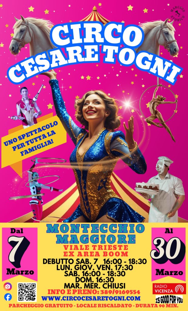 Il Circo Cesare Togni si prepara a incantare Montecchio Maggiore con il suo nuovo spettacolo della tournée 2026, che farà tappa in città dal 7 al 30 marzo presso viale Trieste (Ex Area Boom).+3