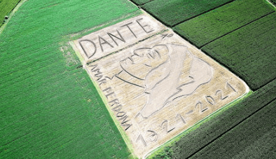 Anche la Land Art celebra i 700 dalla morte di Dante con una maxi opera di 25.000 metri quadrati realizzata su un terreno agricolo a Castagnaro, (Verona) dall’artista Dario Gambarin. E’ il più grande ritratto al mondo del sommo Poeta, spiega Gambarin, che sotto al profilo dell’autore della Divina Commedia ha tracciato anche il finale – “..Amar Perdona” – del celebre verso del V canto dell’Inferno.