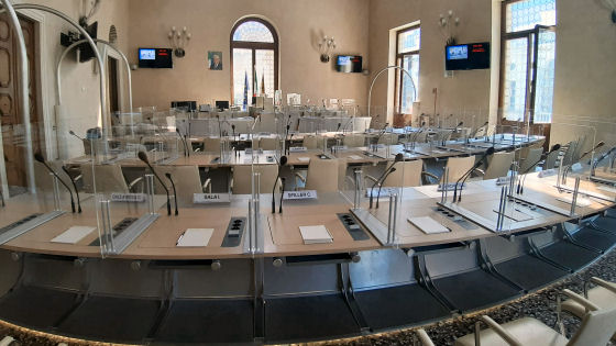 Da oggi alle 17 i consiglieri comunali ritorneranno a sedere in sala Bernarda a seguito dei lavori di installazione delle barriere in plexiglass tra i banchi in modo da garantire la sicurezza nel rispetto della normativa per il contenimento del Coronavirus.