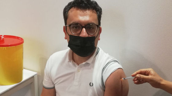 Ha aspettato in coda il proprio turno e, dopo essere stato vaccinato, ha atteso i 15 minuti canonici post iniezione.
