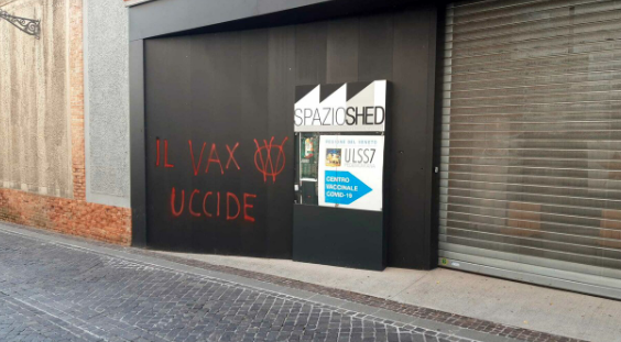 “Il vax uccide”: scritte vandaliche al centro vaccinale di Schio