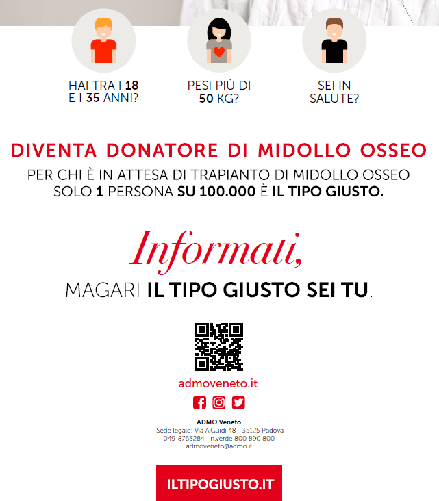 Un campagna di sensibilizzazione alla donazione che Admo sta portando avanti da anni, assieme a tanti amici, partner, testimonial, amministrazioni comunali ed altre associazioni in una regione, il Veneto, comunque sensibile e sempre pronta a mettersi in gioco.