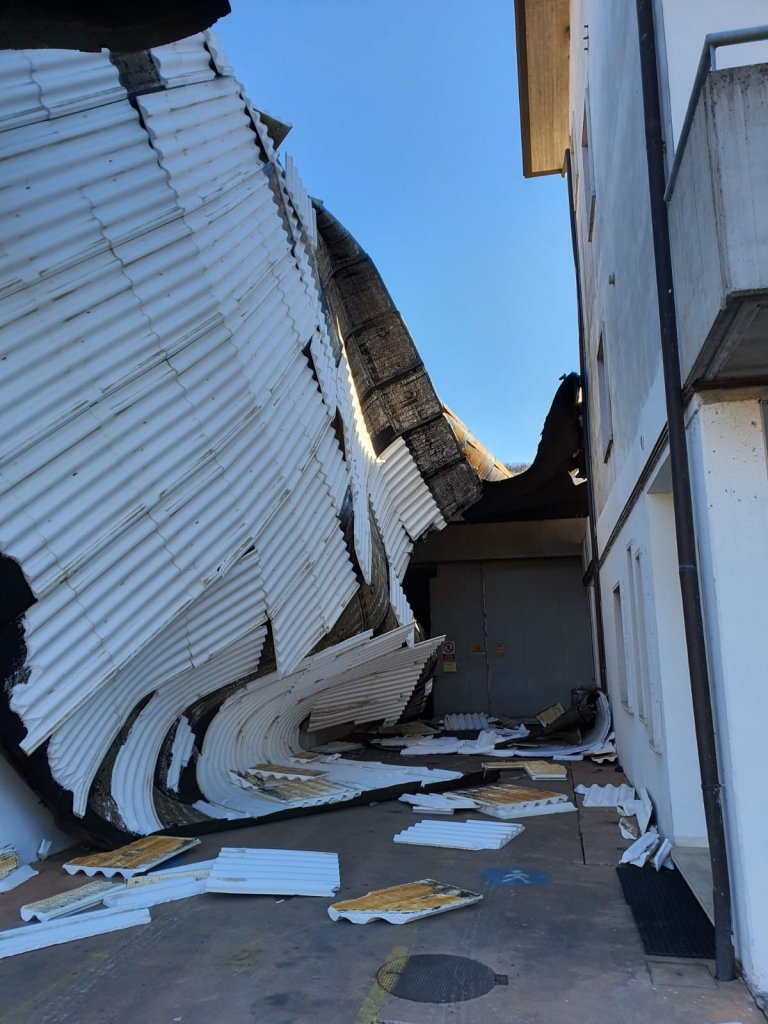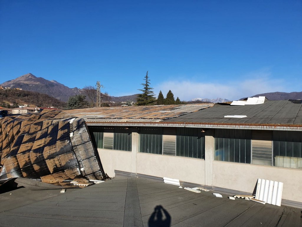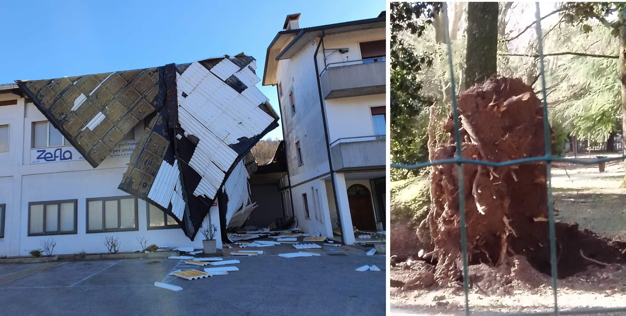 Il vento scoperchia un’azienda di Valdagno, abbattuto cedro secolare di 30 metri