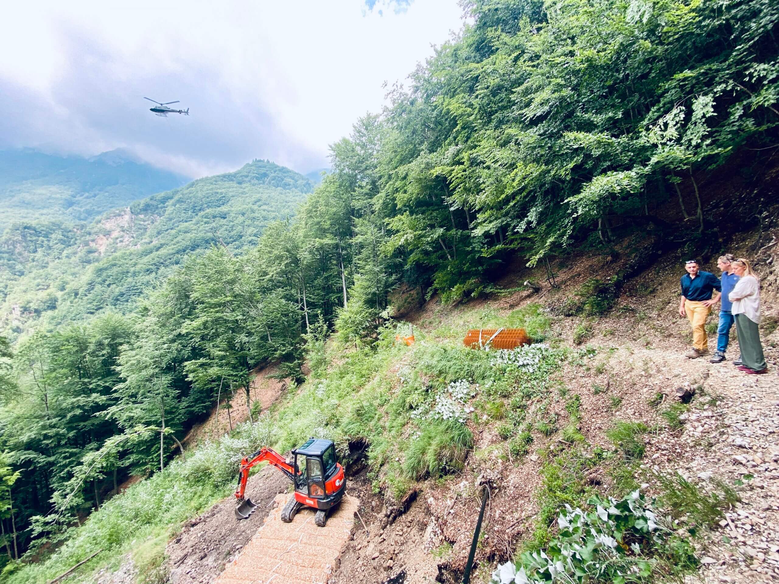 Un cantiere in montagna logisticamente così complesso da richiedere anche l’utilizzo di un elicottero per trasportare i materiali per effettuare l’intervento.