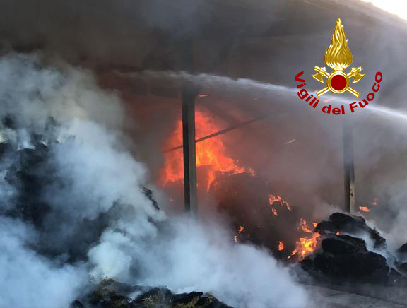 In fiamme in capannone di fieno: pompieri al lavoro (FOTO)