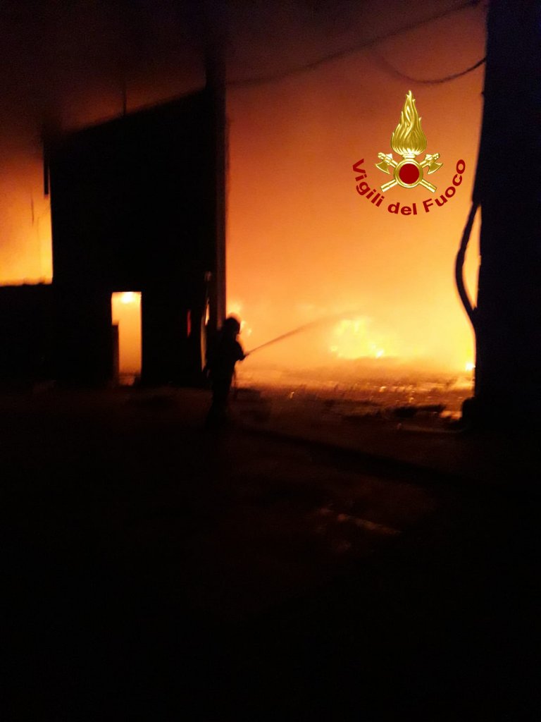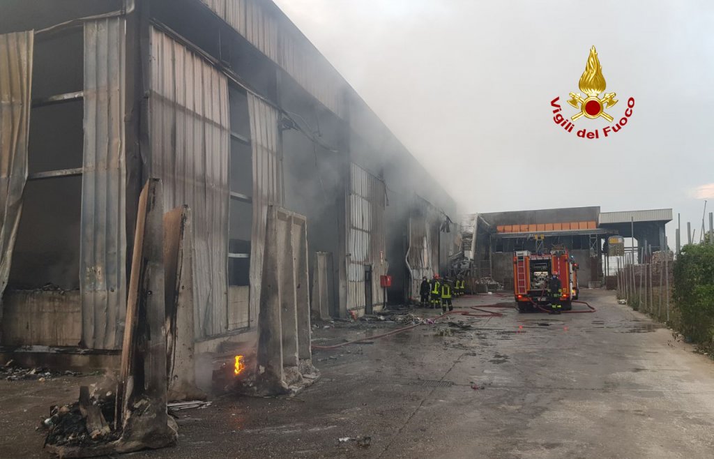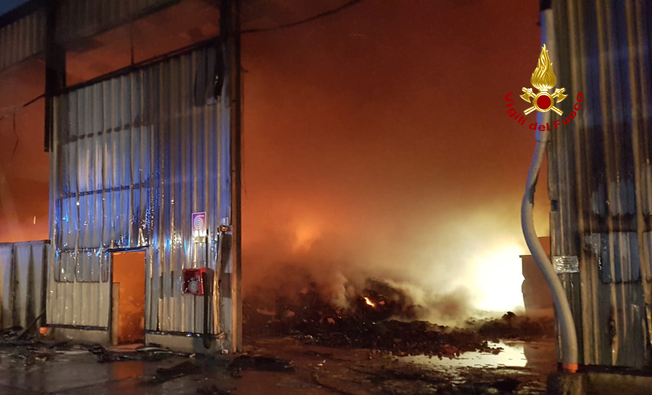 Incendio all’ecocentro: a fuoco plastica e metallo della raccolta differenziata (FOTO)