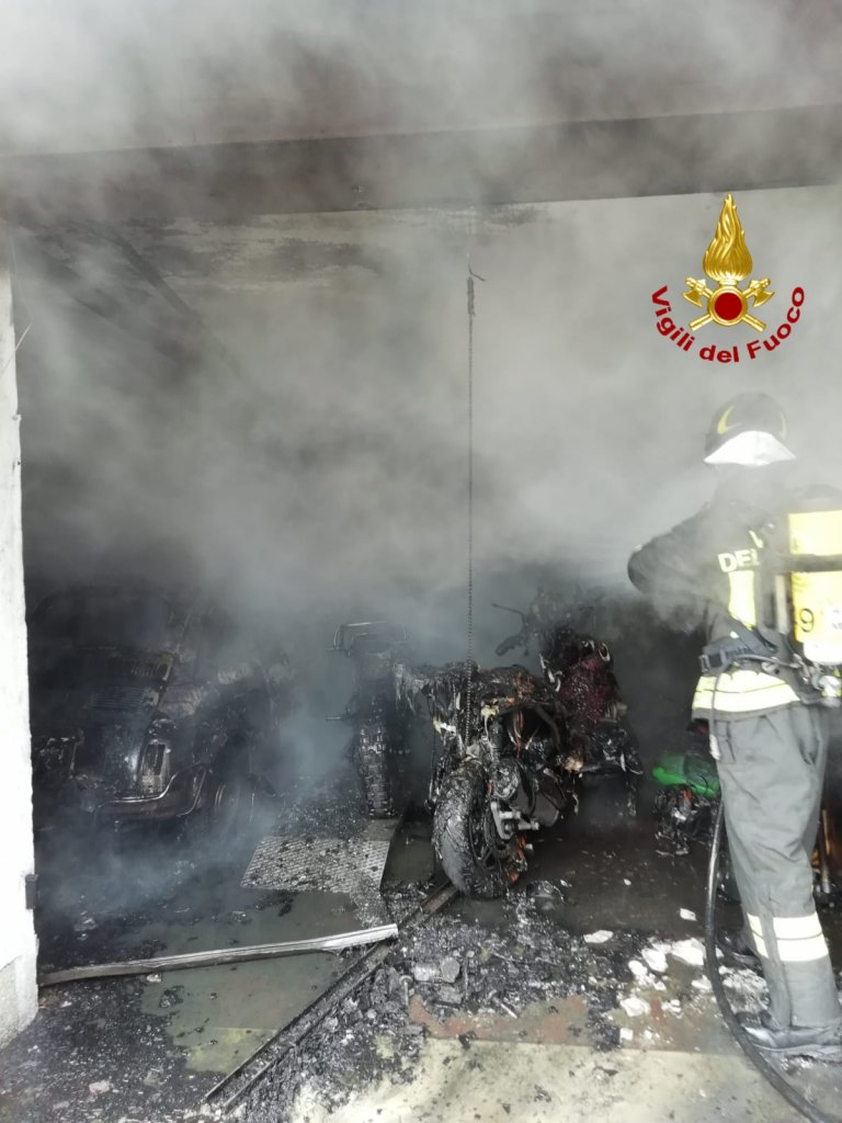 Incendio in garage: a fuoco due auto (una storica), moto e scooter