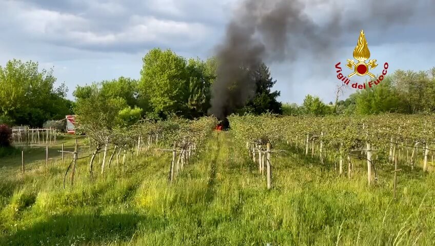 Incendio in Riviera Berica: trattore a fuoco (FOTO)