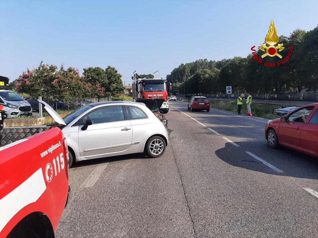 Poco dopo le 8, i vigili del fuoco sono intervenuti lungo la SP 47 Valsugana a San Giorgio in Bosco per un incidente tra due auto e un furgone finito nel fossato: due feriti. I pompieri arrivati da Cittadella, hanno messo in sicurezza i mezzi ed estratto due feriti, rimasti incastrati all’interno dei veicoli, i quali sono stati presi in cura dai sanitari del SUEM per essere trasferiti in pronto soccorso. Sul posto le forze dell’ordine per la deviazione del traffico e i rilievi del sinistro.