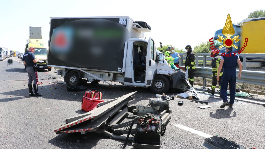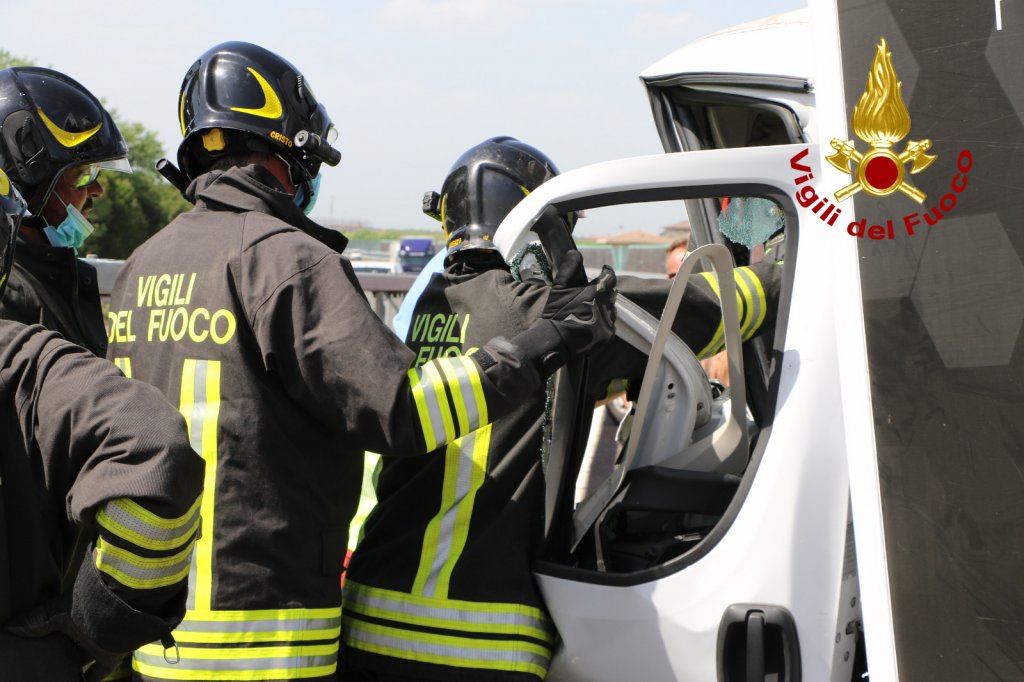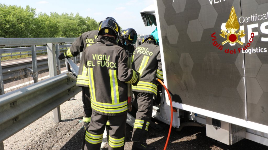 Alle 15:30, i vigili del fuoco sono intervenuti in autostrada tra l’allacciamento dell’A31 e Vicenza Nord per un incidente tra un camion di cui si è staccata la pedana di carico e un furgone cabinato: ferito l’autista del mezzo più leggero finito contro il guardrail. I pompieri arrivati da Vicenza con due automezzi tra cui l’autogrù e 7 operatori, hanno messo in sicurezza il furgone e utilizzando cesoie divaricatori e martinetti idraulici, lavorato oltre mezz’ora per liberare l’autista, rimasto incastrato nelle lamiere della cabina di guida. L’uomo è stato stabilizzato dal personale del SUEM ed elitrasportato in ospedale. Durante le operazioni di soccorso il traffico è rimasto bloccato con il formarsi di lunghe code anche in A4. Le operazioni di soccorso dei vigili del fuoco sono terminate dopo circa due ore con il recupero della pedana di carico.
