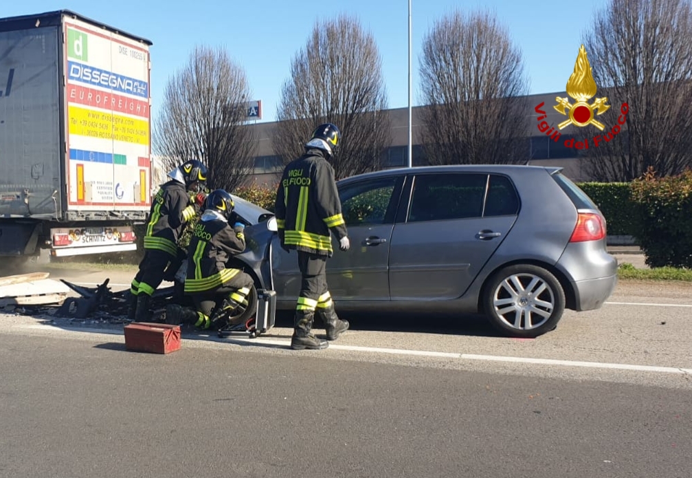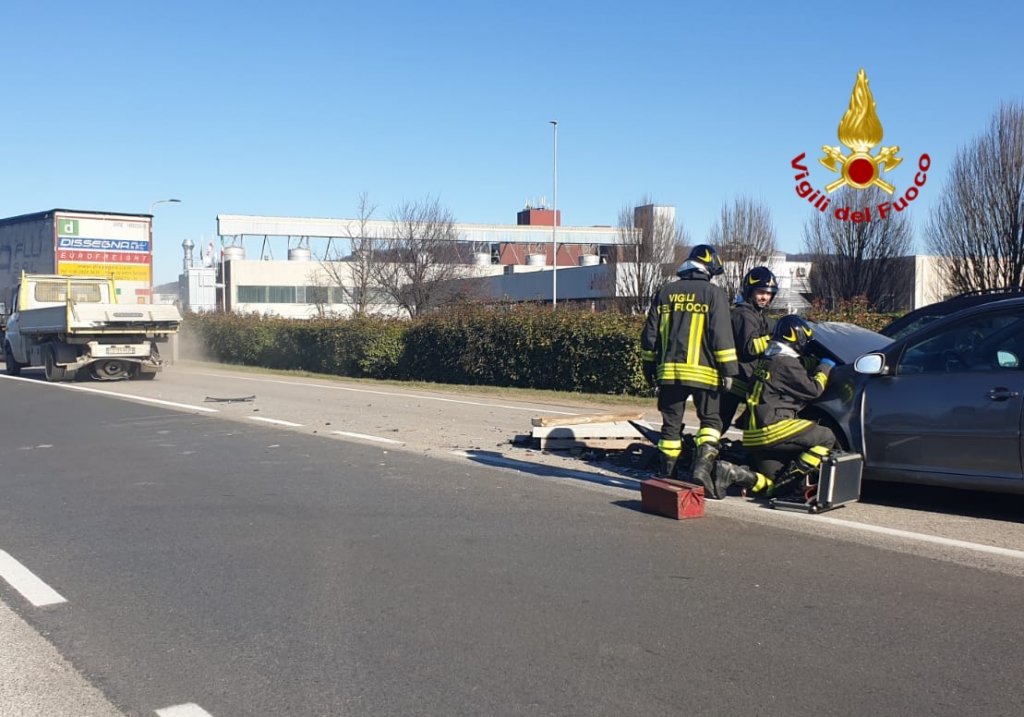 Poco dopo le 14:00, i vigili del fuoco sono intervenuti lungo la SR 11 in via Fracanzana a Montebello Vicentino per un tamponamento. Un’auto, condotta da P.G di 43 anni uomo residente a Vicenza ha tamponato un furgone condotto da F.G. uomo di 52 anni residente a Zimella .