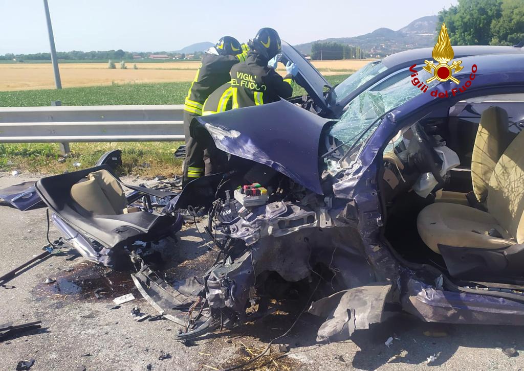 Poco dopo le 16:00, di domenica, i vigili del fuoco sono intervenuti lungo la Strada regionale 10 Padana inferiore tra Este e Carceri per un incidente tra tre auto: otto feriti. I pompieri arrivati da Este, hanno messo in sicurezza i mezzi ed estratto una persona rimasta incastrata all’interno di una delle auto e collaborato ai soccorsi sanitari. Tutti i feriti sono stati stabilizzati dai sanitari del SUEM e trasferiti in ospedale: due in elicottero e i rimanenti on quattro ambulanze. I carabinieri hanno deviato il traffico su strada alternativa ed eseguito i rilevi del sinistro. In corso di ultimazione le operazioni di soccorso.