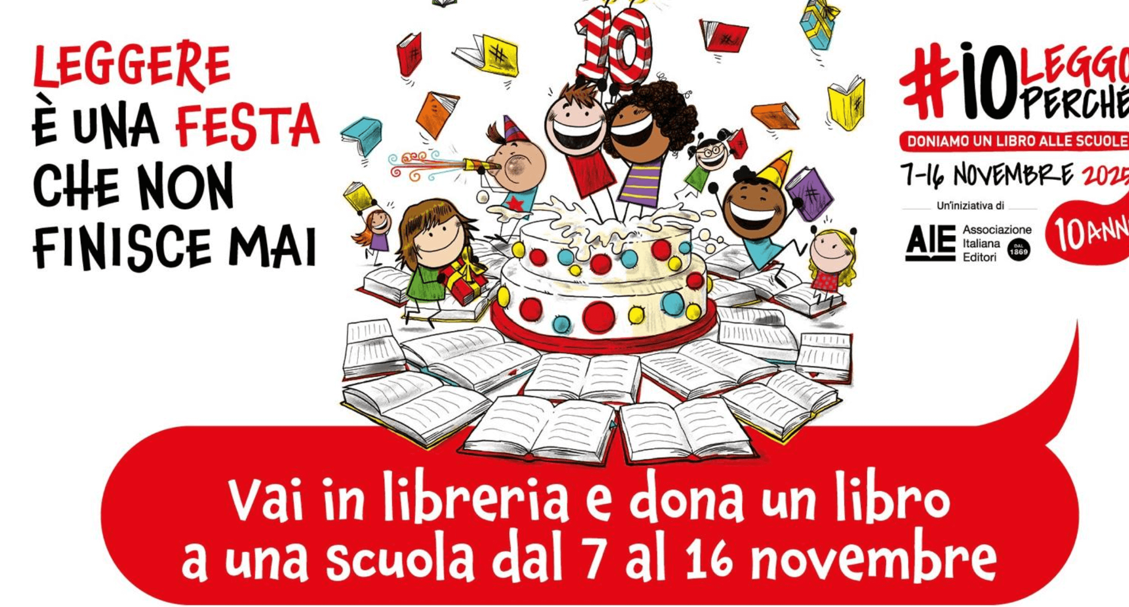 Compie dieci anni #ioleggoperché, il progetto sociale dell’Associazione Italiana Editori (AIE) per la creazione e il potenziamento delle biblioteche scolastiche: dal 2015, in sinergia con scuole, librerie e tutto il mondo del libro, istituzioni, media, permette di aprire o potenziare migliaia di biblioteche scolastiche in tutto il Paese, promuovendo la lettura tra bambini e ragazzi. Quest’anno lo farà un giorno in più rispetto alla programmazione consueta, dal 7 al 16 novembre, coinvolgendo 29.216 scuole, 350 nidi, oltre 4,2 milioni di studenti e 4.061 librerie in tutta Italia in cui sarà possibile andare a donare un libro.