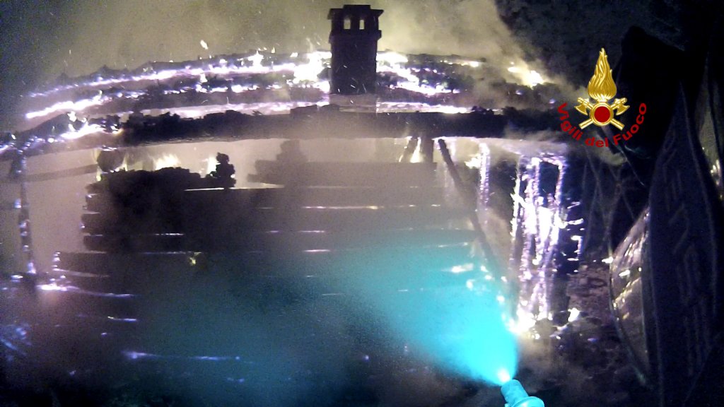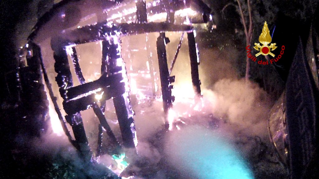 ISOLA VIC.NA – Casetta di legno a fuoco nella notte (foto e video)