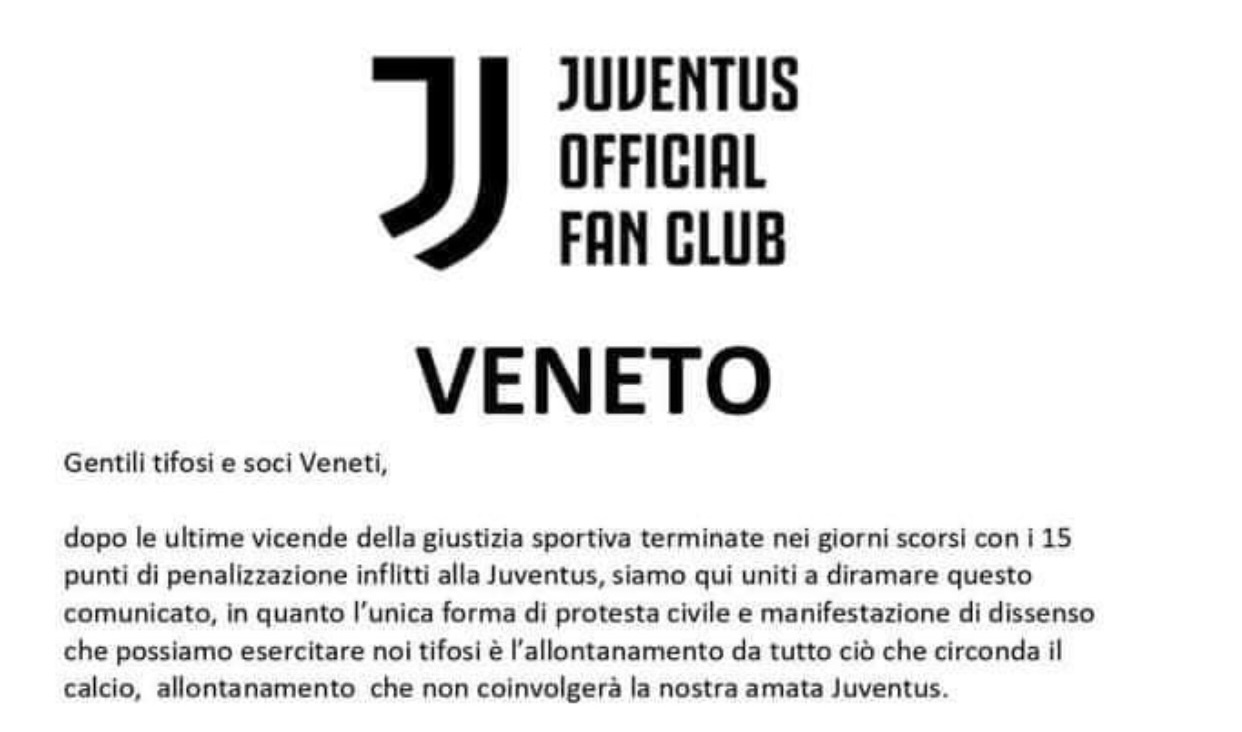 “Gentili tifosi e soci Veneti,