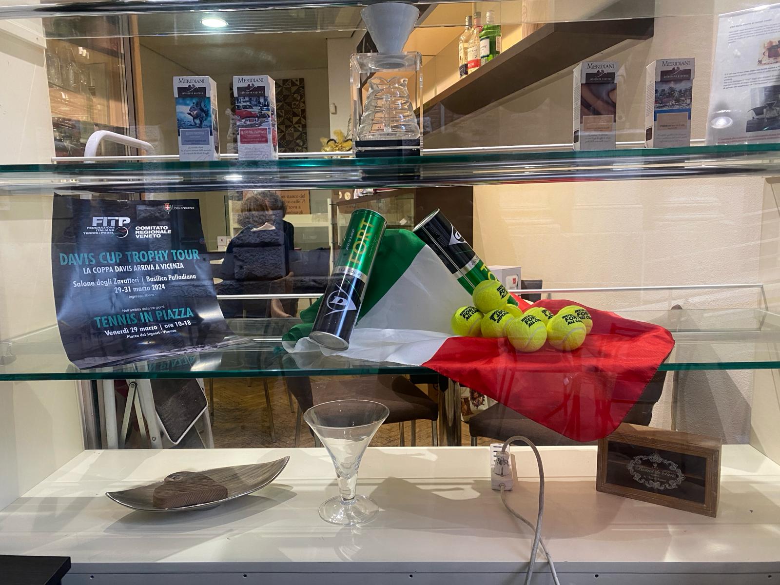 Vicenza si prepara ad accogliere la Coppa Davis, che da venerdì 29 a domenica 31 marzo potrà essere ammirata in Basilica Palladiana. In vista della permanenza in città del trofeo conquistato dagli azzurri lo scorso novembre a Malaga, i negozi di piazza dei Signori e delle vie e piazze limitrofe hanno iniziato ad adornare le loro vetrine a tema. L’iniziativa, promossa dall’assessorato allo sport del Comune e da Confcommercio, ha visto coinvolti per la consegna di circa un migliaio di palline da tennisduegiovani volontari. Le palline sono state donate dal comitato regionale della Federazione Italiana Tennis e Padel.