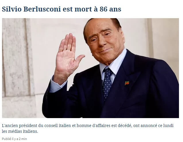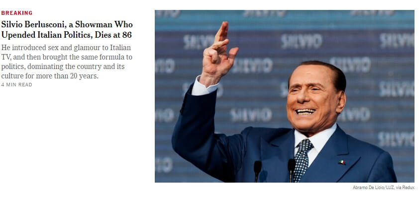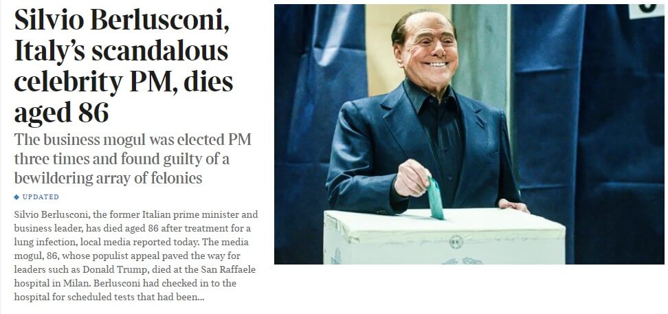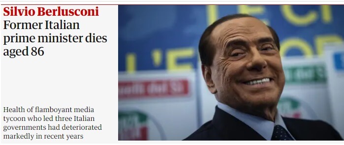 Riproponiamo alcuni dei titoli delle principali testate mondiali sulla morte di Silvio Berlusconi (in aggiornamento)