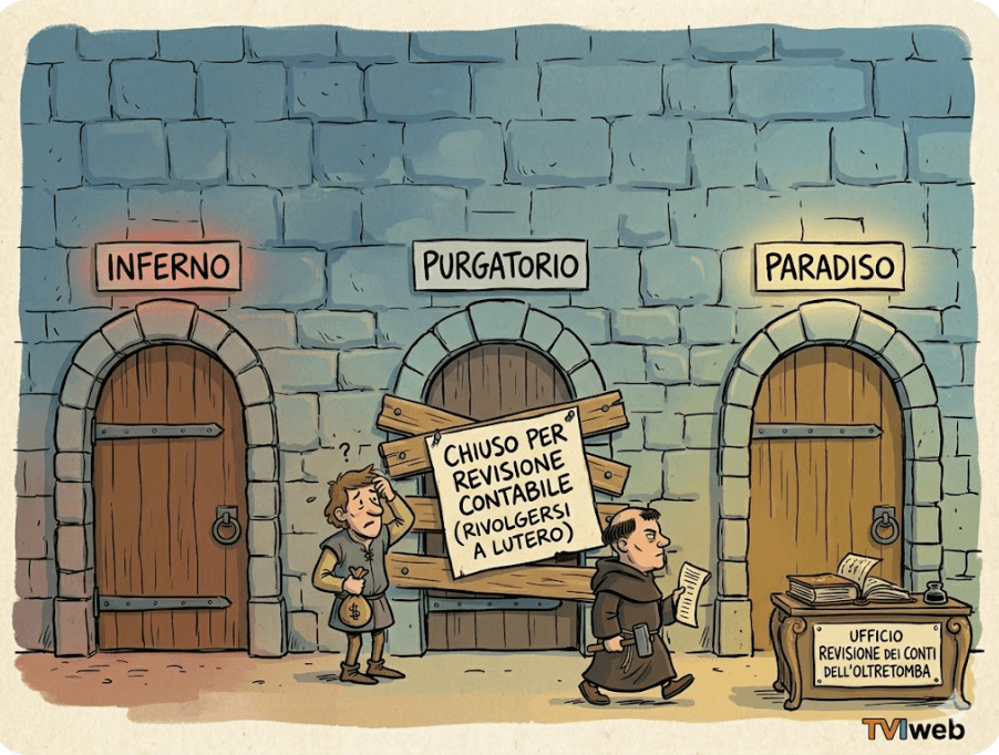 Per Lutero, la grazia di Dio non era una merce da banco, né il Purgatorio un ufficio postale dove spedire bonifici spirituali.