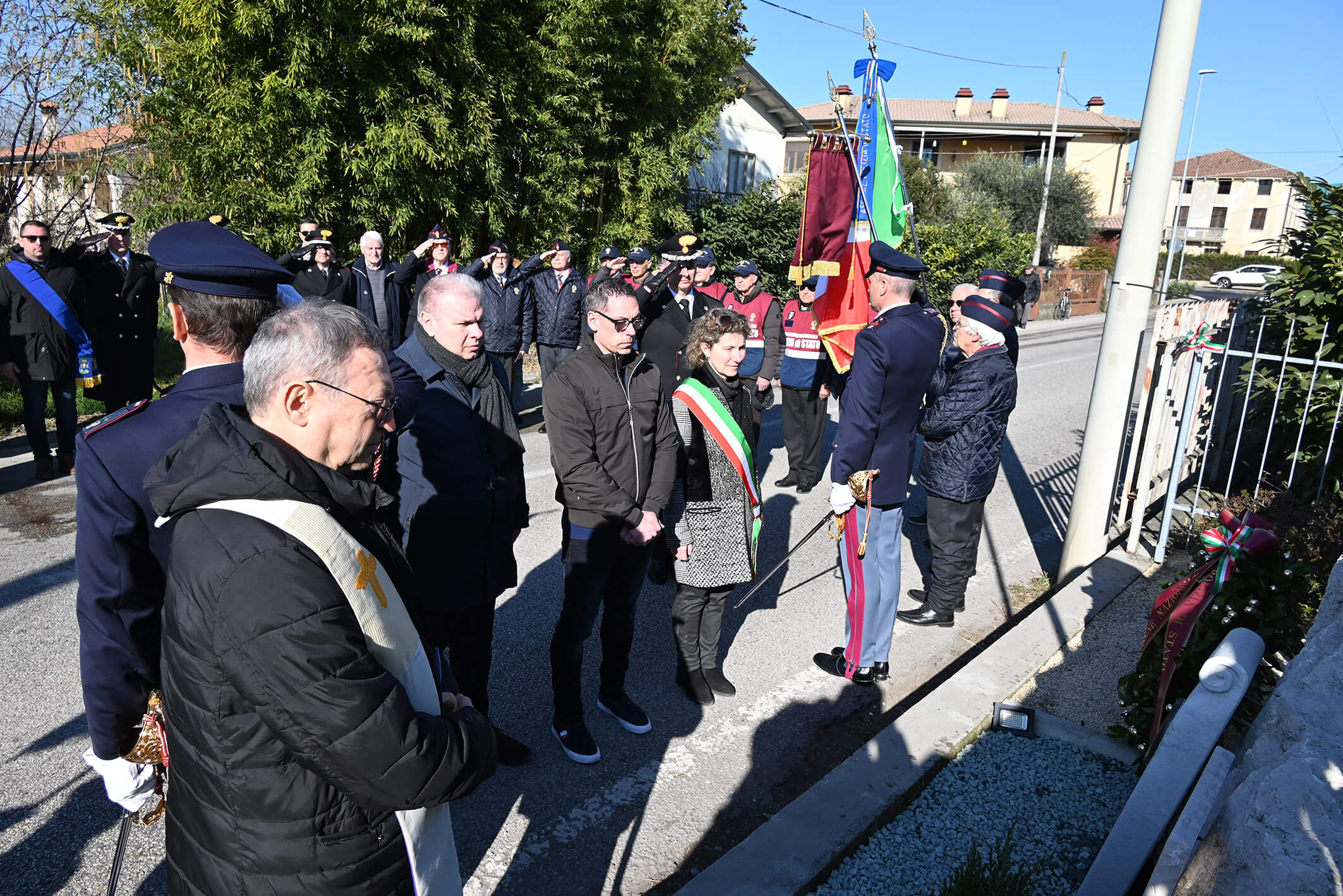 La cerimonia si è svolta alla presenza del Sig. Questore della Provincia di Vicenza, Dr Paolo SARTORI, del Vice Prefetto Vicario di Vicenza Dr.ssa Renata CARLETTI, dei Comandanti dell’Arma dei Carabinieri e della Guardia di Finanza di Vicenza, del Sindaco di Dueville, del Cappellano della Polizia di Stato Don Giampietro PAOLI e della locale ANPS (Associazione Nazionale Polizia di Stato).
