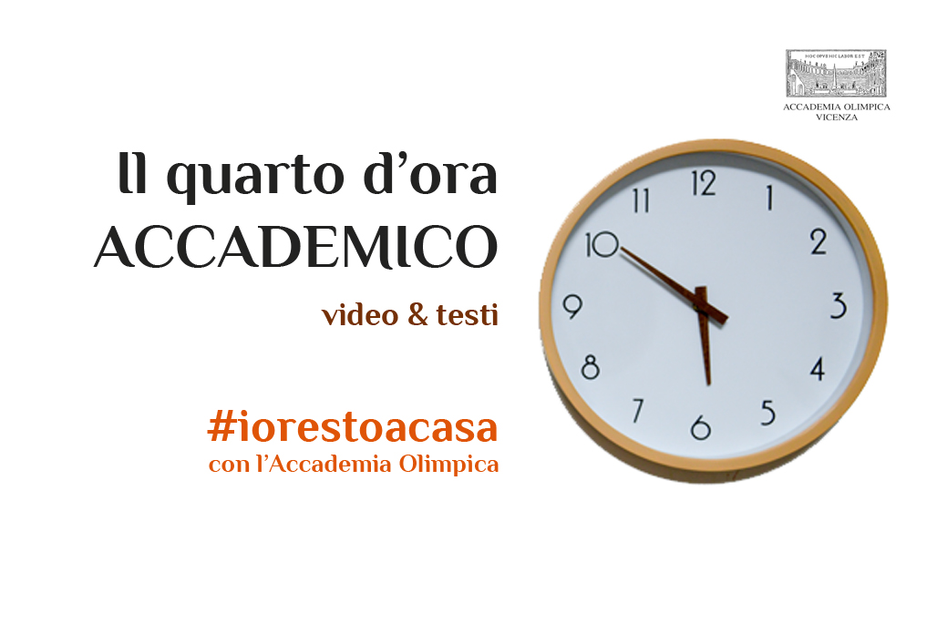 Nasce così l’iniziativa online intitolata “Il quarto d’ora accademico”, che l’Accademia Olimpica, storica istituzione vicentina attiva dal 1555, ha deciso di mettere in atto per non interrompere la propria vivace attività culturale e per dare un contributo alla comunità in questi giorni difficili.