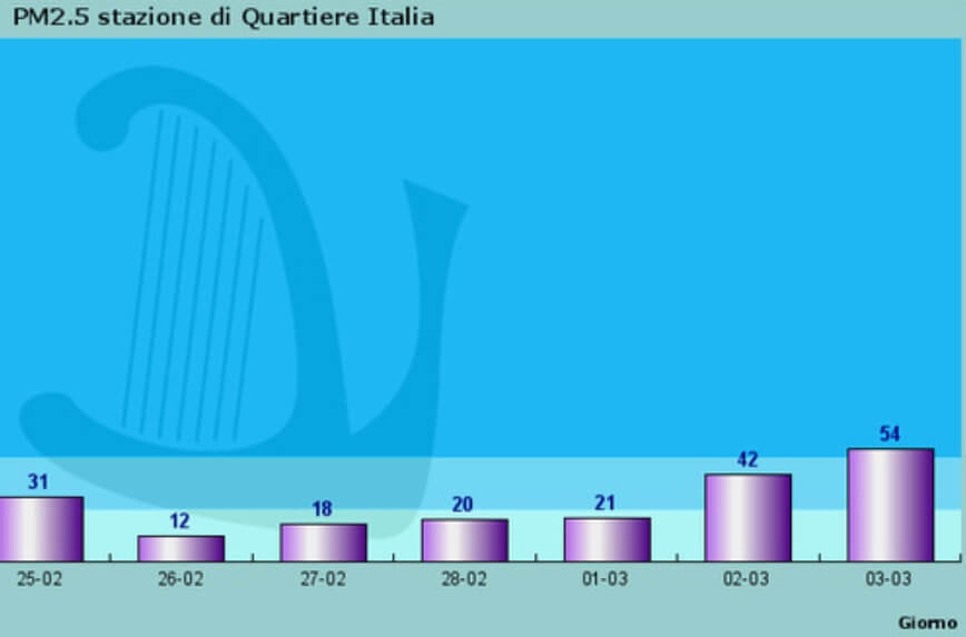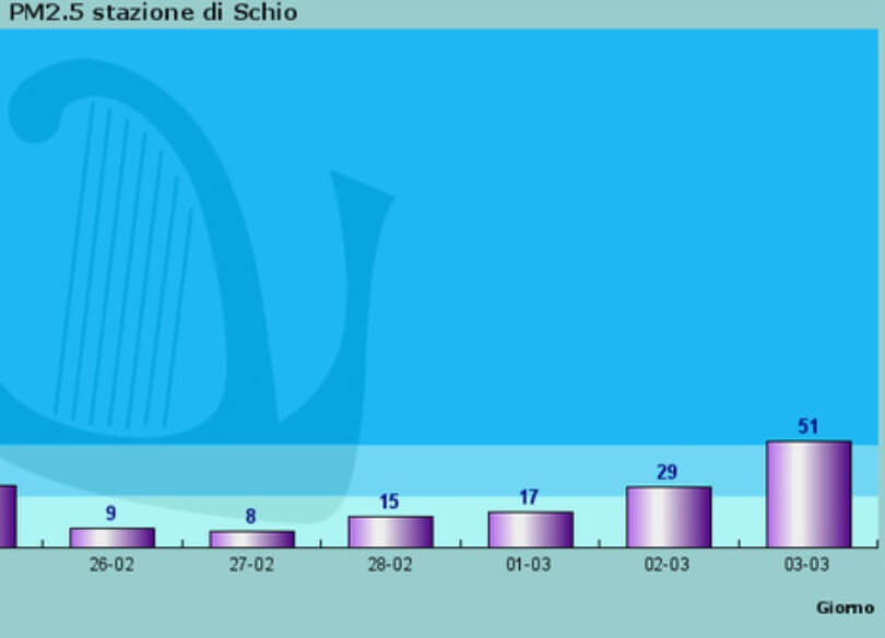 (nella foto: i livelli di pm 2.5 a Vicenza – Quartiere Italia; sotto: i dati di Schio)