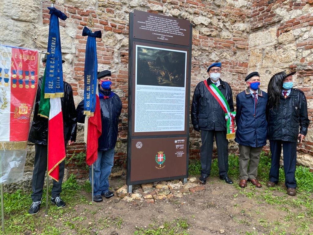 Oggi, in una giornata piovosa come la notte dell’assedio, l’amministrazione comunale ha scoperto sotto le mura scaligere della Rocchetta, tra viale Mazzini e contra’ Cattaneo, un pannello illustrativo a memoria di quell’episodio che, insieme ad altri, valse alla bandiera di Vicenza la prima medaglia d’oro al Valore Militare per i fatti del 1848.