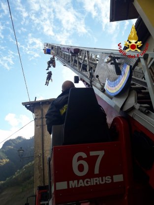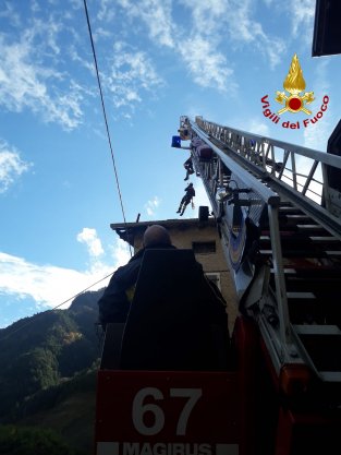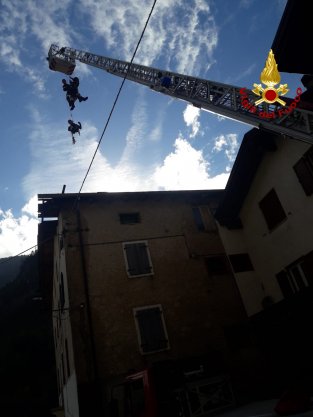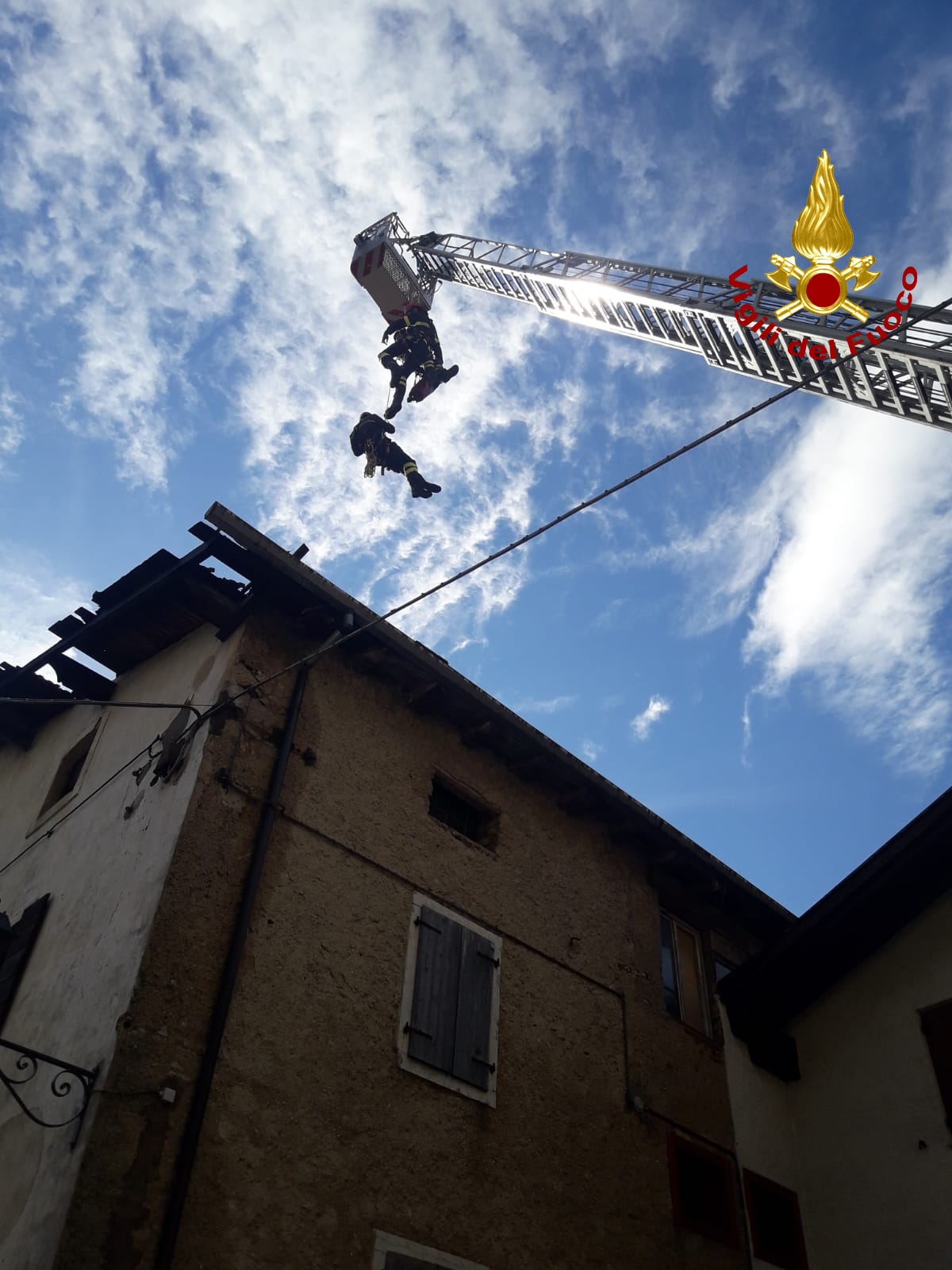 Dopo la grande paura per il maltempo, i Comuni dell’Alto Vicentino tentano un veloce ritorno alla normalità. E fanno la conta dei danni. Come sempre in questi casi, gli instancabili Vigili del Fuoco, dopo aver operato nell’emergenza, ora si occupano del post-maltempo. Nelle foto, uno degli interventi per la messa in sicurezza di una copertura a Lastebasse, con personale dei vigili del fuoco  di Schio e Vicenza.