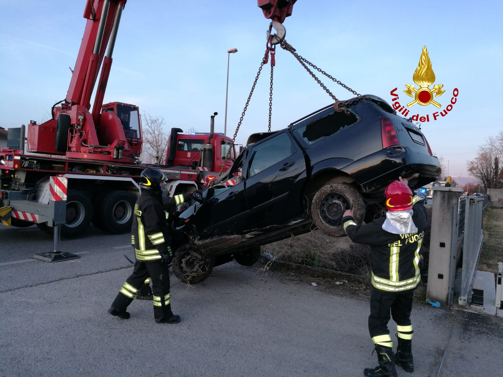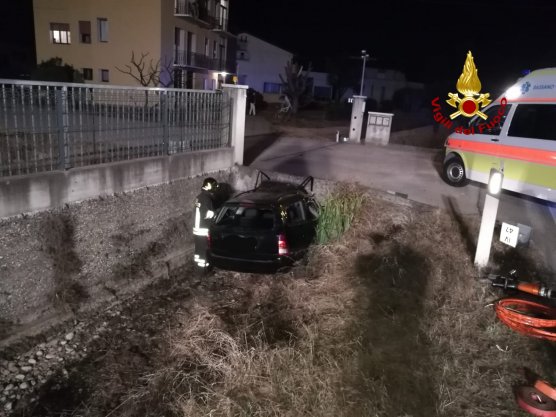 Poco prima delle 5:30 di questa mattina, i vigili del fuoco sono intervenuti in via Bassano a Rossano Veneto per l’uscita autonoma di un’auto finita nel fossato contro il muretto, che delimita l’ingresso di un’abitazione: deceduto il conducente. I pompieri arrivati da Bassano e da Padova con l’autogru, hanno estratto la Ford Focus infilatasi dentro il tubo in cemento dello scolo. Nonostante i soccorsi i personale medico del suem 118 ha dovuto dichiarare la morte del 46 enne di Rossano, Enrico Moi. I carabinieri hanno deviato il traffico ed eseguito i rilievi dell’incidente . Le operazioni di soccorso dei vigili del fuoco sono terminate dopo circa due ore.