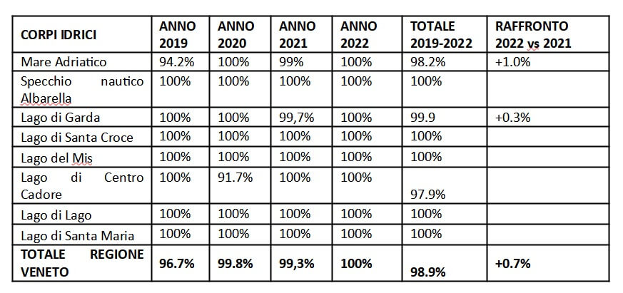 “Un trend sempre ottimale negli anni, – spiega l’Assessore – che quest’anno ha raggiunto l’eccellenza assoluta. Da un’analisi dell’ultimo quadriennio di dati 2019-2022, periodo che sarà utilizzato anche per la classificazione 2022 delle acque di balneazione valida per l’inizio della stagione balneare 2023, si evidenzia che a livello di regione le percentuali di campioni esaminati conformi ai limiti di legge sono sempre state elevatissime: 96,7% di conformità nel 2019, 99,8% nel 2020, 99,3 % nel 2021, 100% nel 2022”.