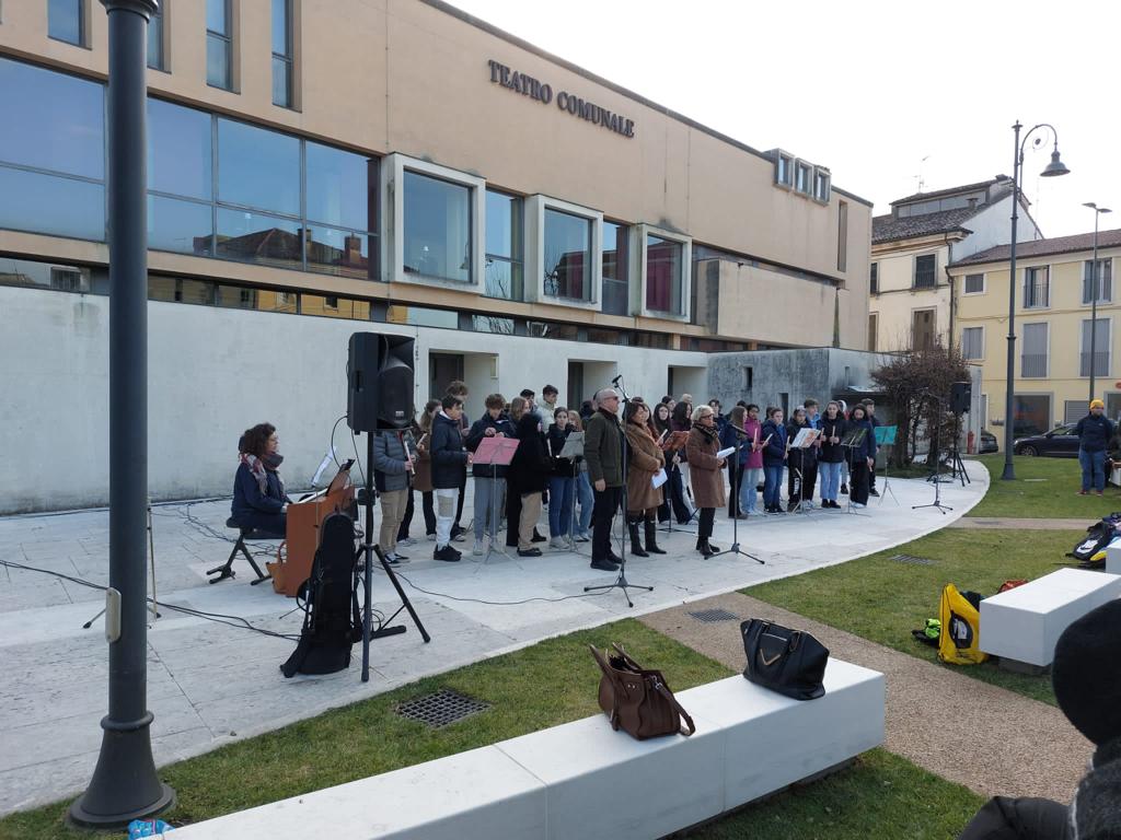 Nel 78° anniversario della liberazione del campo di Auschwitz gli studenti delle scuole secondarie di 1° e 2° grado di Lonigo hanno oggi celebrato la Giornata della Memoria, presso il Teatro all’Aperto. Presenti l’assessore all’istruzione Sandra De Marzi e l’assessore alla cultura Roberta Fipaldini, mentre gli studenti hanno suonato dei brani musicali e letto delle letture attinenti al tema. “La Shoah – ha detto l’assessore De Marzi agli studenti – è un evento senza paragoni che ci obbliga alla memoria e ci costringe a chiederci come tutto questo possa essere successo. Come ha detto più volte la senatrice Liliana Segre, dobbiamo combattere l’indifferenza, grazie alla quale questi mostri del passato possono rialzare la testa”.