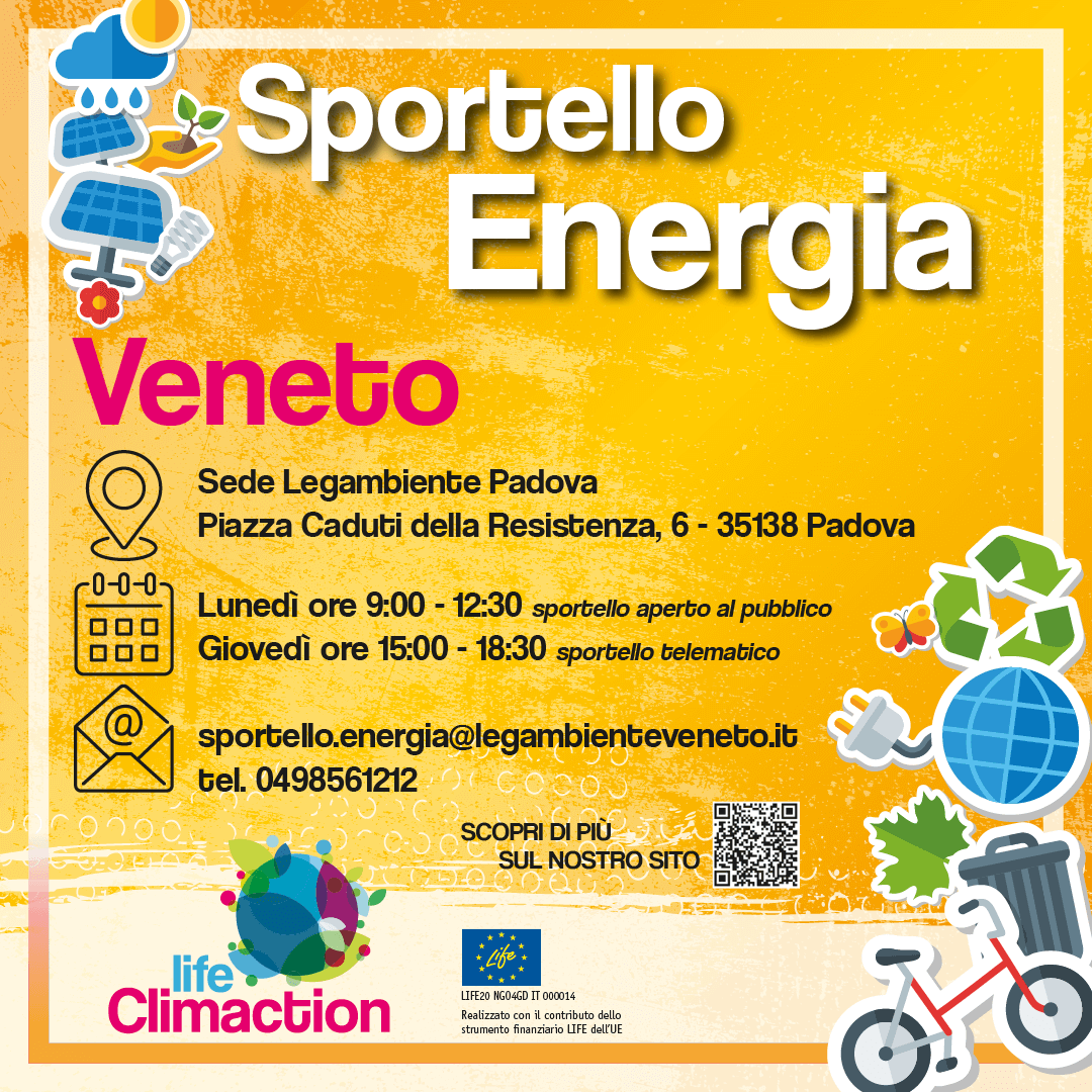 Si può anche usare la mail sportello.energia@legambienteveneto.it, tel.049.8561212.
