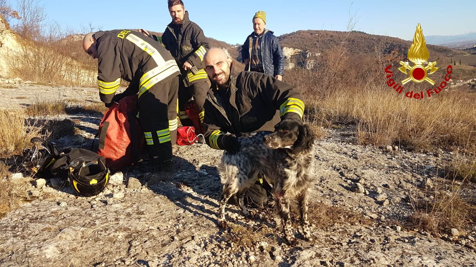 Alle 8:30 circa, i vigili del fuoco sono intervenuti nella zona sopra le alture del cimitero di Lumignano di Longare per il salvataggio di un cane. Asia, un setter inglese, stava percorrendo insieme con il suo padrone un pianoro, quando attirata da qualcosa è caduta verticalmente  per diversi metri, finendo su una cengia. I pompieri allertati dal cacciatore, che era in compagnia dell’animale, sono riusciti a raggiungere il cane, riuscendo a portarlo in salvo. Buone le condizioni dell’animale. Le operazioni di soccorso dei vigili del fuoco sono terminate dopo circa un’ora e mezza.