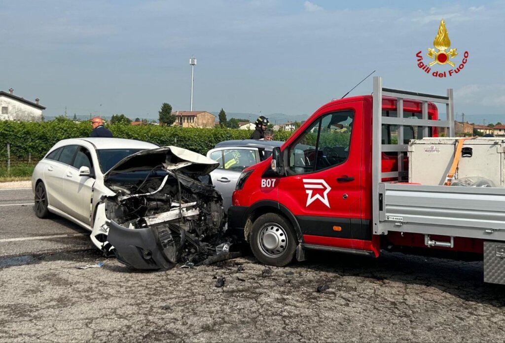 Lonigo (VI) – Incidente stradale questa mattina, giovedì 5 giugno, lungo la Strada Provinciale 17 in località Almisano, dove due auto e un furgone si sono scontrati causando quattro feriti, tra cui anche una mamma con il figlio di 2 anni.