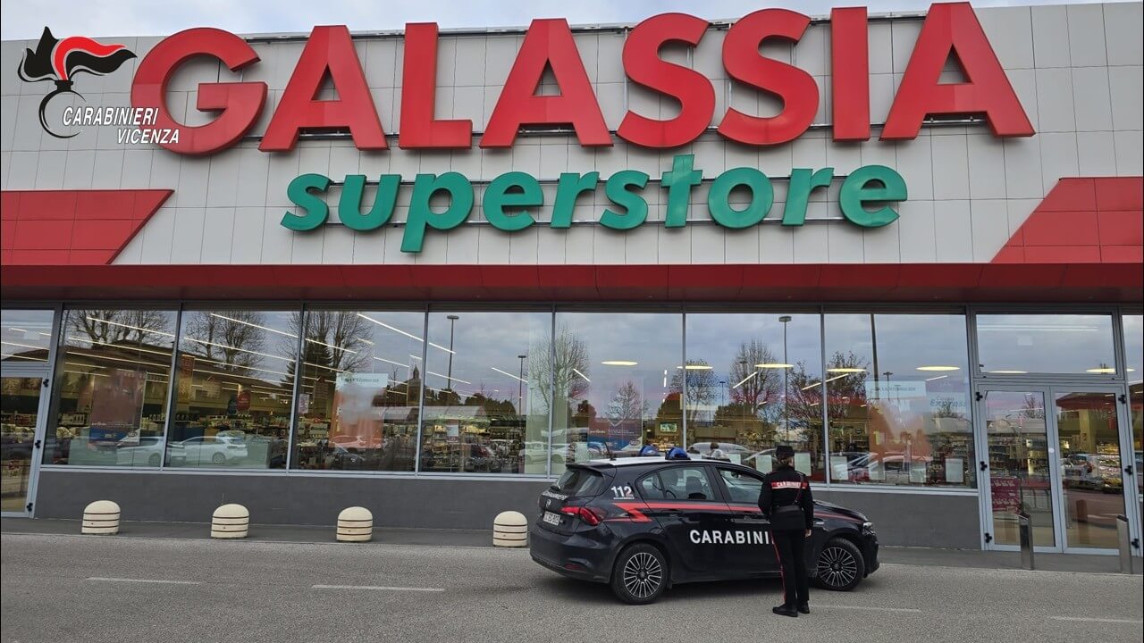 LONIGO (VI) – Momenti di tensione nella serata del 6 febbraio 2026 al supermercato “Galassia” di via Circonvallazione. Intorno alle 17:30, B.B.R., cittadino marocchino classe 1990, residente anagraficamente a Lonigo ma senza fissa dimora e già noto alle forze dell’ordine, è stato sorpreso a rubare della merce dagli scaffali e a cercare di superare le casse senza pagare.