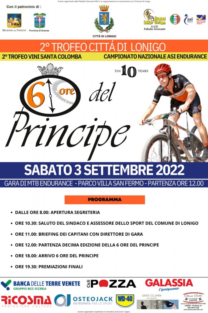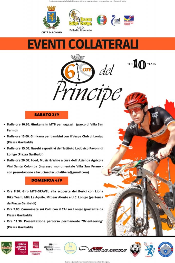Si inizia sabato 3 settembre alle 10.30 a Villa San Fermo con una gimkana in mountain bike per ragazzi, mentre alle 12 scoccherà l’ora della “6 Ore del Principe”, che si concluderà alle 18.