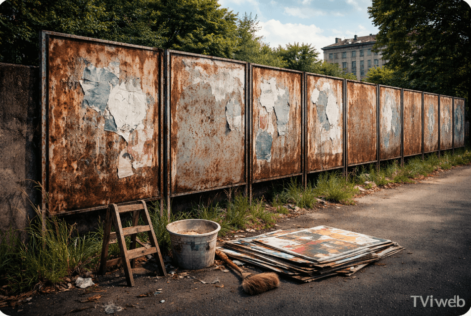 Quei tabelloni di metallo sono lì, arrugginiti, superstiti di campagne elettorali combattute a colpi di faccioni grandi come lenzuola.