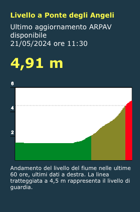 AGGIORNAMENTO ORE 12 – Mentre la pioggia non sembra volersi placare nel Vicentino, alle 11:30 il Bacchiglione in città ha quasi raggiunto i 5 metri. Tutti gli occhi sono puntati su di esso, mentre poco lontano il Timonchio erode gli arigni e Orolo tracima sul bacino. “In questo momento sono in funzione i bacini di laminazione di Montebello, di Caldogno e sull’Orolo”: lo rende l’assessore veneto alla protezione civile, Gianpaolo Bottacin, in relazione alla situazione meteo in provincia di Vicenza. Nel primo pomeriggio è stata convocata una conferenza stampa in Comune per gli ultimi aggiornamenti.