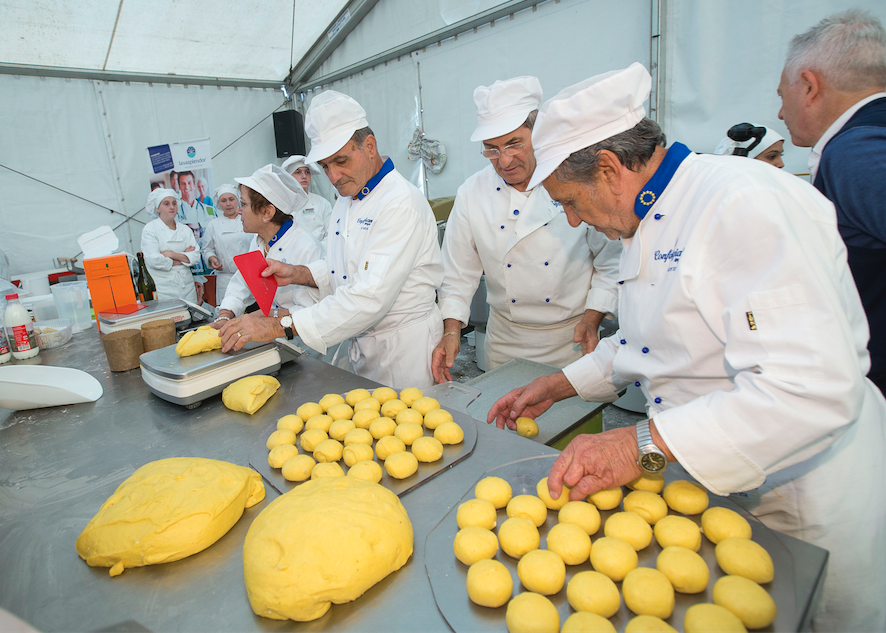 La vetrina fieristica di Marano Vicentino, che ha da poco spento i riflettori, non ha dimenticato il ruolo di solidarietà, condiviso da tutto il Comitato MAAV, che ha assicurato un aiuto concreto al Comune di Monterfortino (FM), colpito dal sisma dello scorso anno. Il laboratorio di panificazione di Confartigianato, coadiuvato dagli studenti del CFP di Trissino e dal gruppo di coordinamento “Marano Vic.ino a Voi” con più di cento volontari di Marano Vicentino che si sono resi disponibili su richiesta del sindaco Marco Guzzonato, ha realizzato un ricavo di 10.411,50 euro grazie alla produzione di pane, biscotti, lievitati, pizze e focacce, parte del quale andrà a sostenere il progetto per la realizzazione di un forno nel comune marchigiano. Un grande lavoro di squadra che ha garantito un risultato straordinario dal punto di vista umano e sociale, caratterizzato altresì dalla presenza dei Panificatori di Macerata, che hanno proposto la tipicità della loro arte bianca. “E’ stato bello riaffermare la cultura del pane come bene primario – afferma Andrea Piovan, presidente di Confartigianato del mandamento di Thiene – ma anche l’esperienza vissuta con gli studenti ha valorizzato enormemente il laboratorio. Grazie inoltre a tutti gli artigiani che, volontariamente e dopo il proprio impegno lavorativo, non si sono sottratti a sostenere questa iniziativa rivolta a uno scopo benefico”.