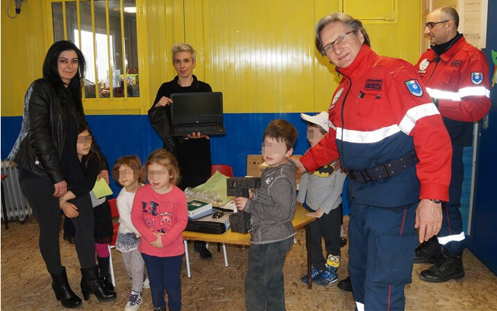 MONTEMONACO (AP) Nuovo viaggio della solidarietà del 184° Nucleo di Protezione Civile dell’Associazione Nazionale Carabinieri del Marosticense a Montemonaco, paese della provincia di Ascoli Piceno martoriato dal terremoto e dal maltempo. Nuovo perché già a fine gennaio una delegazione aveva consegnato stufe, pellet e mangime per cani e gatti. Nello scorso week end i volontari che fanno capo a Marco Carlesso hanno portato a destinazione altri due furgoni carichi di materiale utile alla popolazione. E questo è stato possibile solo grazie alla generosità di aziende e gruppi del territorio locale. A partire dai 24 quintali di pellet offerti dalla “Florian Legno Spa” di Riese Pio X (che si vanno ad aggiungere ai 7 della volta precedente): provvidenziale per quelle famiglie che, rimaste senza casa o in alcuni casi nelle loro abitazioni ma senza riscaldamento, hanno ricevuto le stufe e continueranno ad essere rifornite anche del combustibile. Utile anche per scaldare luoghi di aggregazione come la Proloco e l’asilo, allestito in un container. E come non pensare ai più piccoli: tanta la gioia dei bimbi e della maestra che hanno scartato, alla presenza del vicesindaco Manuela Corbelli, il computer donato dal gruppo parrocchiale “Giovani di Molvena”, ma anche il materiale didattico (carta e colori) fornito sempre da “Florian Legno Spa”.