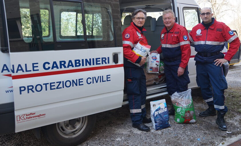 Il Nucleo Cinofilo Regionale Anc Veneto, che fa parte del Nucleo del Marosticense, ha anche pensato agli amici a quattro zampe del comune terremotato raccogliendo ulteriori 4 quintali di cibo, secco e umido, per cani e gatti (altri 4 erano già stati consegnati a fine gennaio).