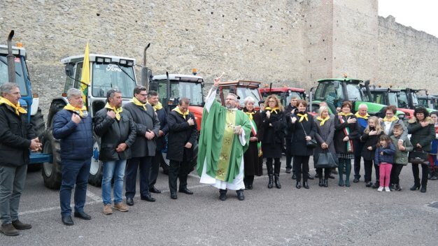Oltre 600 persone, 203 macchine agricole ed una cinquantina di cesti con i prodotti tipici del territorio berico che, al termine dell’evento, sono stati donati a famiglie bisognose della zona. Sono questi i numeri dell’edizione 2017 della Giornata del Ringraziamento svoltasi ieri a Marostica. Nel corso della santa messa, concelebrata da don Gianfranco Reghelin e don Elia Lunardi, è stato posto l’accento sui temi trattati dalla Commissione Episcopale per i problemi sociali e il lavoro, la giustizia e la pace nel documento elaborato per la 67a Giornata del Ringraziamento, intitolato: “Terra, realtà da custodire”. Un impegno che gli agricoltori non hanno mai abbandonato, come ha evidenziato nel suo intervento il presidente provinciale di Coldiretti Vicenza, Martino Cerantola: “E’ forte nelle nostre imprese la capacità inclusiva familiare, che ha imposto un nuovo modello, mutato da “lavoro come produzione” a “lavoro come servizio”. A questo si aggiunge una rinnovata pratica di coltivazione della terra, declinata nel segno dell’attenzione all’ambiente, intensificando le buone pratiche già in atto in molte realtà dei nostri territori, favorendo forme di produzione a basso impatto, attente alla biodiversità, capaci di privilegiare le produzioni autoctone e no Ogm, anche per contrastare lo sviluppo di quel mutamento climatico che proprio sull’agricoltura ha alcuni degli impatti più devastanti.Aabbiamo vissuto un anno segnato da difficili momenti, dalle gelate alla siccità, con trombe d’aria e grandinate che hanno decimato molte produzioni. Nonostante tutto è sempre rimasta viva la volontà delle famiglie agricole di dare a chi ha bisogno. E lo abbiamo fatto anche attraverso le fattorie sociali, che accolgono anche le persone che non trovano lavoro altrove ed offrono un’opportunità d’impiego di grande valore.”L’ultima sfida, tutta vicentina, è rappresentata dall’apertura del mercato coperto di Campagna Amica, che sarà inaugurato domenica 26 novembre in Via Cordenons, nel centro storico di Vicenza, e diventerà un luogo di proposta dei prodotti del territorio, ma anche di relazione e formazione con iniziative ad hoc pensate per i consumatori”. Entusiasta della giornata anche il sindaco di Marostica, Marica Dalla Valle: “Sono orgogliosa che la città di Marostica abbia ospitato questo splendido evento. Una festa meravigliosa non solo del mondo agricolo, ma di tutta la comunità, che si è stretta attorno agli agricoltori. L’attenzione per l’agricoltura è sempre molto alta, cogliendo anche il fatto che sempre più giovani si dedicano alle attività legate al lavoro della terra ed all’allevamento degli animali”.
