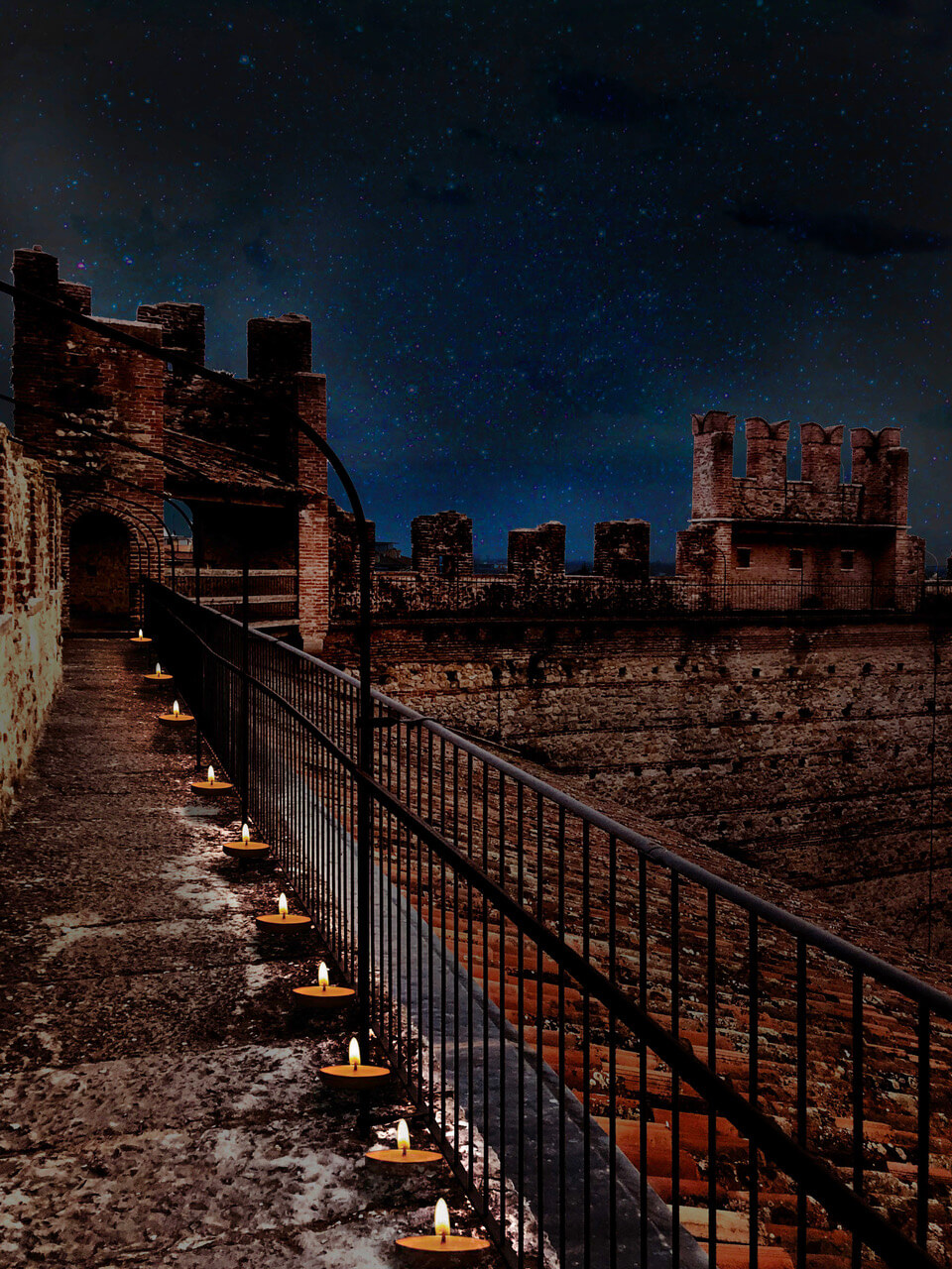 Primo appuntamento, venerdì 10 luglio, quando il Castello Inferiore si potrà visitare a lume di candela: una passeggiata suggestiva e romantica attraverso le antiche sale e gli alti merli che dominano la città. Venerdì 17 luglio, sempre il Castello Inferiore sarà protagonista di una inedita “caccia al tesoro”, alla ricerca di indizi e particolari misteriosi che faranno scoprire i segreti dell’antico mastio. Venerdì 24 luglio, passeggiata notturna sul camminamento di ronda delle mura scaligere, un percorso affascinante per chi è alla ricerca di emozioni forti. Infine, venerdì 31 luglio, il gruppo “I Cialtroni” in “Recitando a passeggio” accompagnerà i visitatori per le vie del centro storico, in una serata di bellezza e arte.