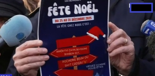 Un invito a festeggiare il Natale in anticipo, a dicembre. Nulla di strano, se non fosse per il contesto. «Non resisto alla tentazione di mostrarvi il piccolo sequestro che abbiamo fatto. Guardate cosa viene distribuito nel quartiere per le vacanze di Natale», ha dichiarato con ironia il prefetto delle Bocche del Rodano, Jacques Witkowski, mostrando un manifesto decisamente inatteso, come si vede nel video diffuso da LCI.