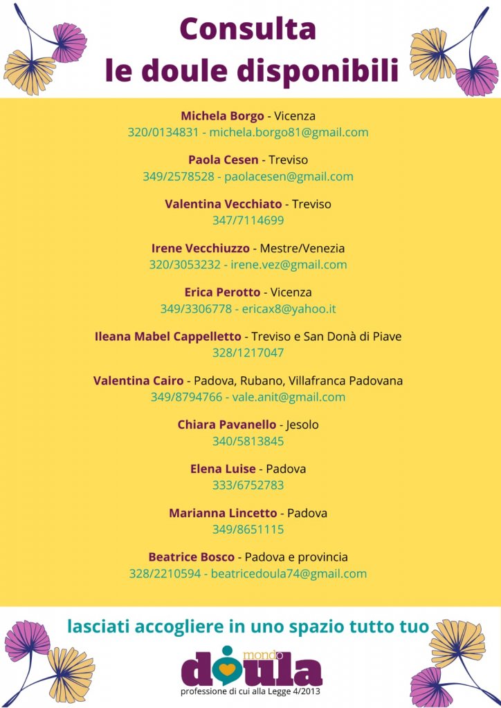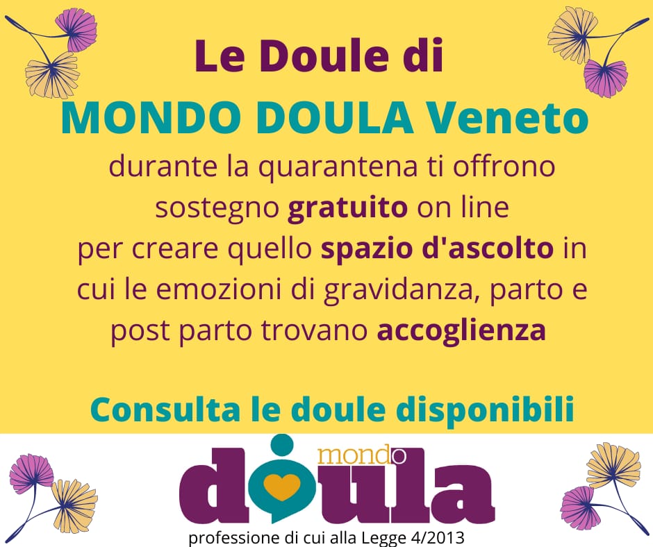 Un aiuto alle future e neomamme arriva da Mondo Doula, associazione che forma e raccoglie le doule d’Italia, quelle figure professionali che si occupano del sostegno pratico, affettivo e relazionale alla donna e alla famiglia dalla gravidanza fino al primo anno di vita del bambino. Le doule offrono un supporto su misura, a domicilio e non, intimo e confidenziale, nel pieno rispetto delle scelte. E così ai tempi del coronavirus anche in Veneto e nel Vicentino arriva “Pronto Doula”, uno spazio d’ ascolto e sostegno telefonico gratuito fondamentale durante il puerperio, quel periodo “limbo” tra la fine della gravidanza e l’inizio di una nuova vita.
