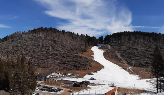 Il secondo motivo di stupore è legato alle piste: artificiali. Come scrive Alto-rilievo: «Lingue lattiginose in mezzo ad un panorama visibilmente brullo. Purtroppo non è il primo inverno carente di neve e la modesta altitudine del comprensorio di certo non aiuta: oscilla infatti tra 1420 e 1735 metri. La neve artificiale regna sovrana, con i suoi costi economici ed ecologici.Infine a stupire, anzi, a far rabbrividire, sono i boschi devastati dalla tempesta Vaia in cui le piste e la funivia si inseriscono. Per carità: in questo i progettisti non hanno nessuna colpa. Tuttavia l’accostamento rende la cartolina ancora più desolante. La perfezione della seggiovia a sei posti unita agli sbancamenti dei pendii circostanti ed alla ristrutturazione delle baite (e più in generale dell’intera area), è costata quasi 12 milioni. Un lavoro tecnicamente magistrale svolto però in una forma e in un contesto inadeguato. I tempi sono cambiati e con essi il clima. È l’ora di ricalibrare l’economia adattandola alle peculiarità ambientali, e non viceversa. Opere di questa natura, più che l’economia, fanno girare qualcos’altro… e pure parecchio».