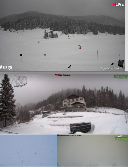 In foto le webcam di: Cima Grappa (Bassano), Rifugio Bertagnoli (Crespadoro), Rifugio Campogrosso (Recoaro), Campomulo (Asiago)