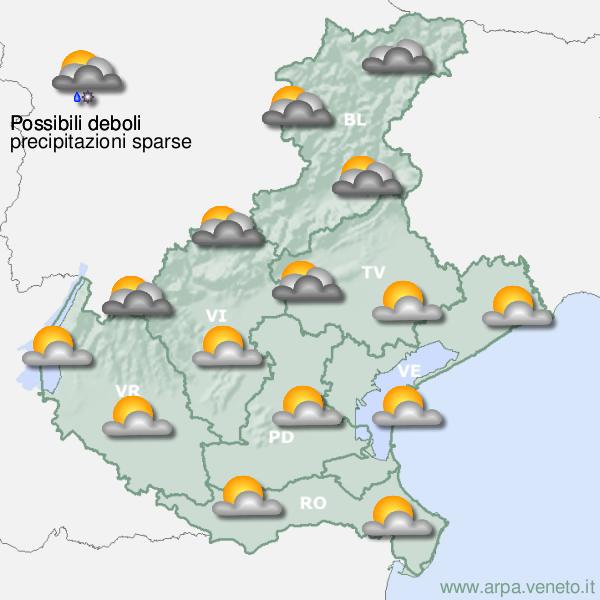 METEO VENETO – Tempo variabile, probabilità di precipitazioni da domenica