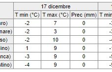 Temperature. Valori senza variazioni di rilievo o in lieve aumento; valori minimi ancora generalmente sotto lo zero.